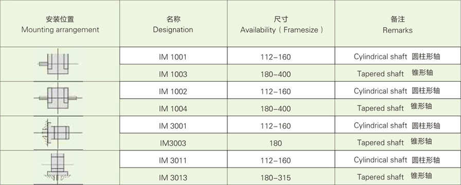 5.渦流制動電動機的結構及安裝形式為IM1001、IM1003、IM3011、IM3013、并按下表規(guī)定制造: