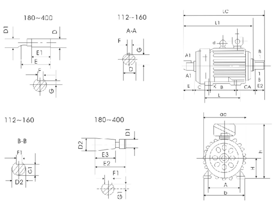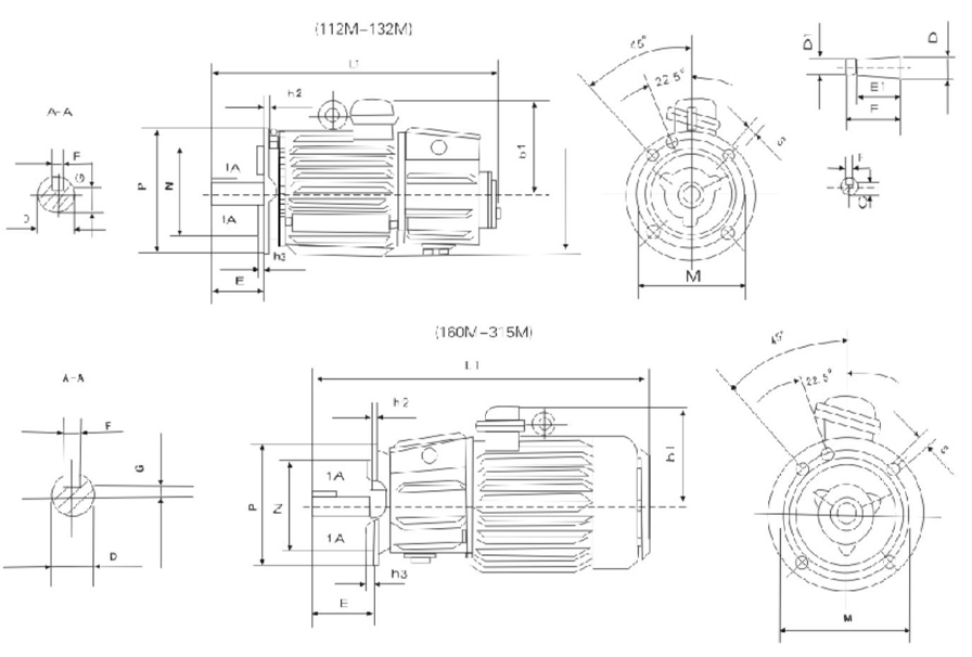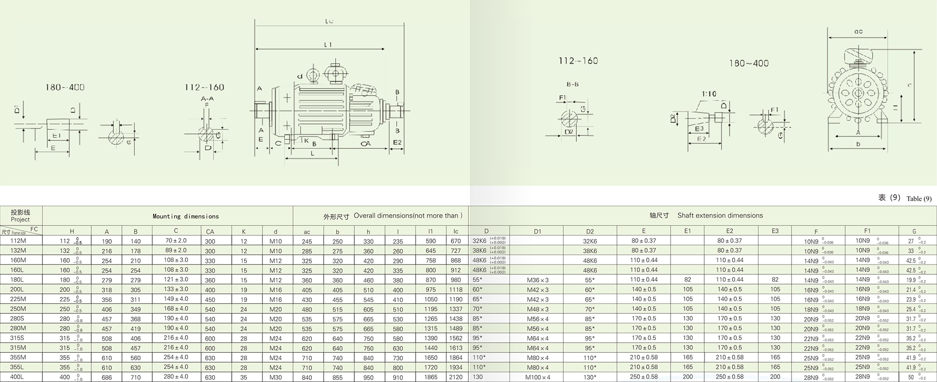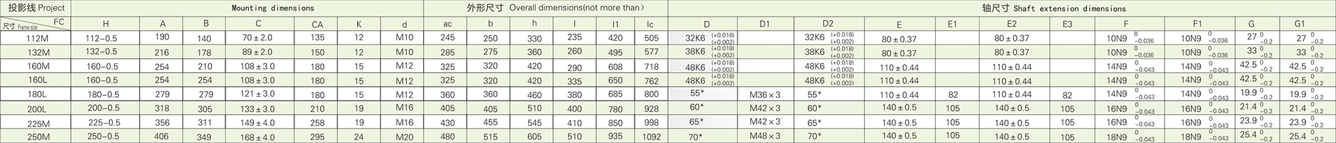 機座號 | 112M | 132M1 | 132M2 | 160M1 | 160M2 | 160L | 180L | 200L | 225M | 250M1 | 250M2 | 280S | 280M | ||